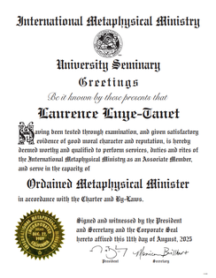 En tant que Metaphysical Minister (B. Msc), je suis habilitée à pratiquer les cérémonies de